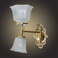 A lovely up and down gaslight 'swingarm' for mounting on either side of your master bed or even your spa or powder room. You can even tell us how long you'd like it! Very cool and VERY custom! Victorian at heart with faux key above the shade holder. Shown with beautiful etched glass which can be changed to a different shade of course. Mount it up or mount it down.