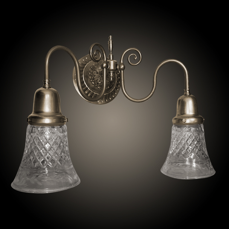 Shown in Antique Brass. Available in different Metal Finishes, different Glass, Back Plate, multiple arms and many other Custom Options